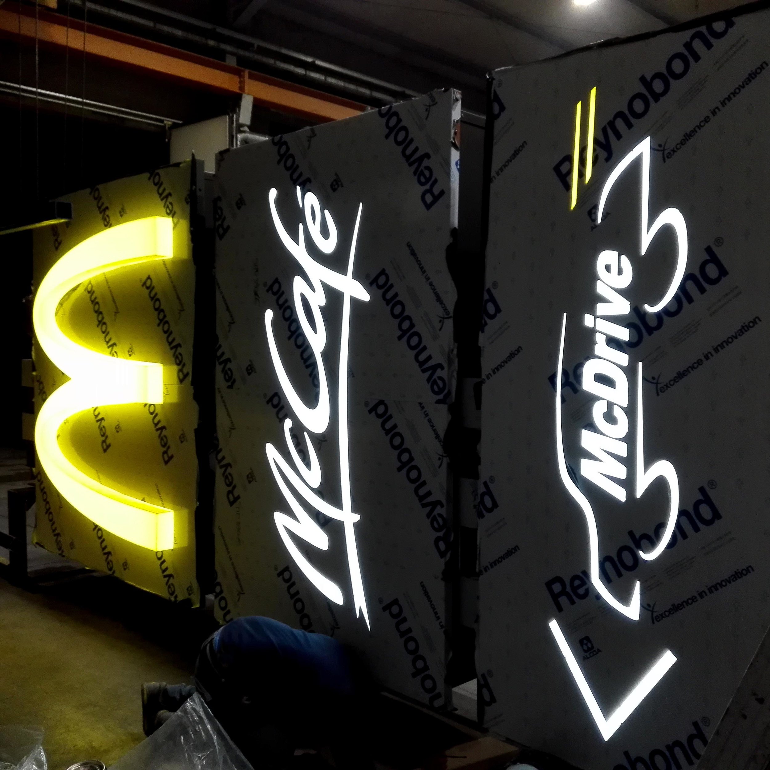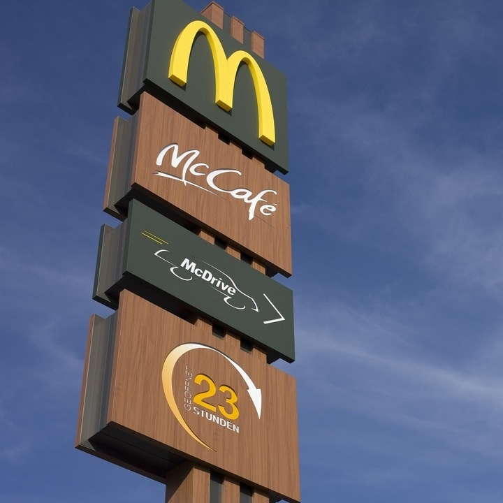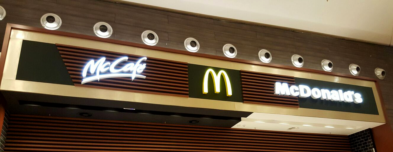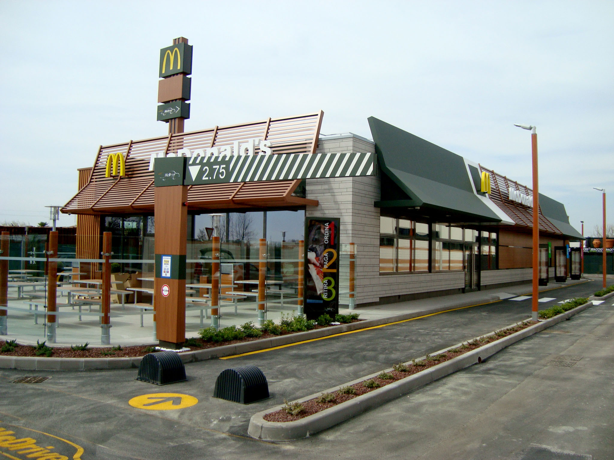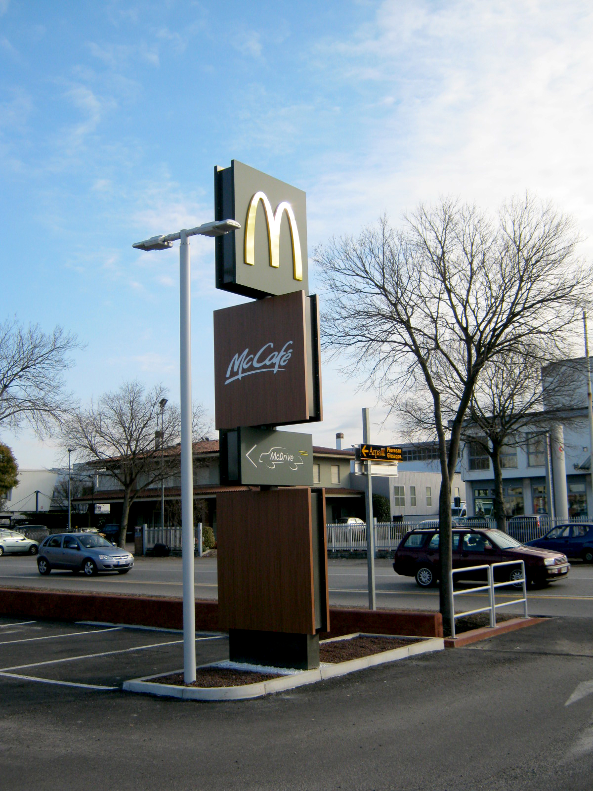 Realizzazione punti vendita, completi di strutture metalliche, rivestimenti di facciata in alluminio composito, insegne corsie drive.