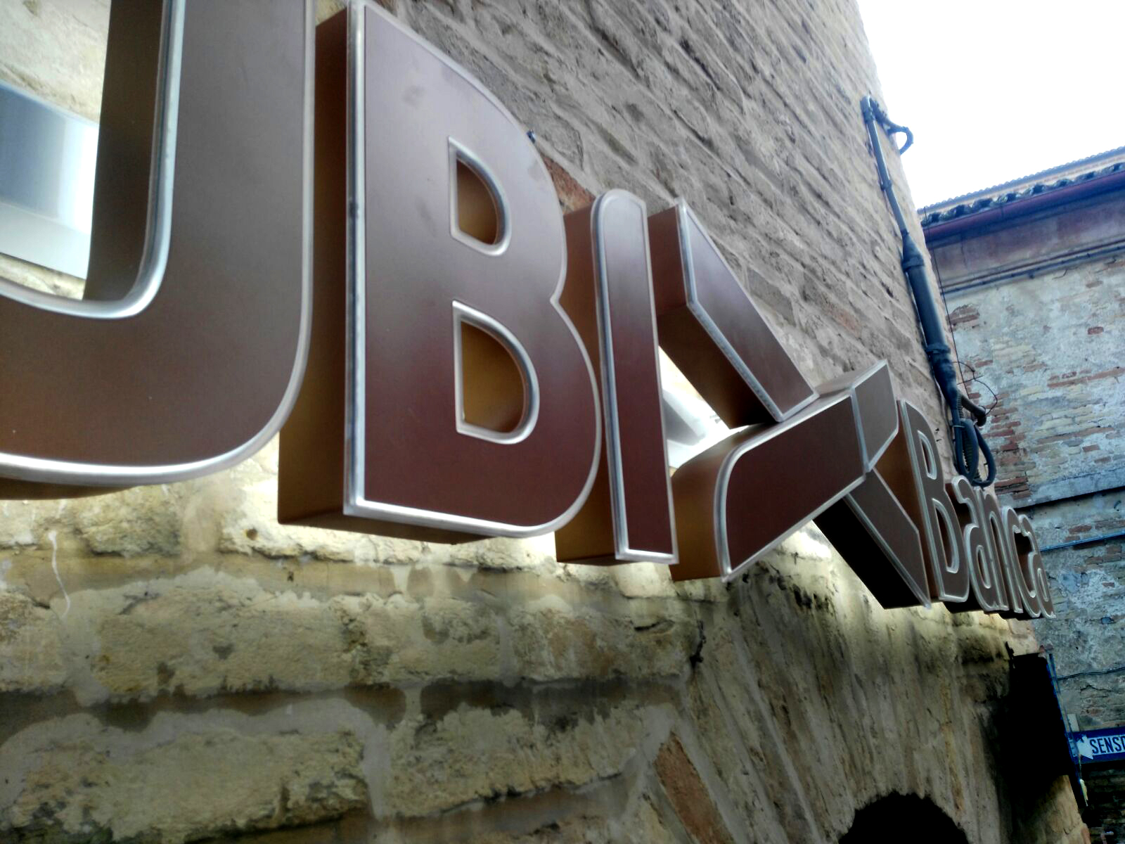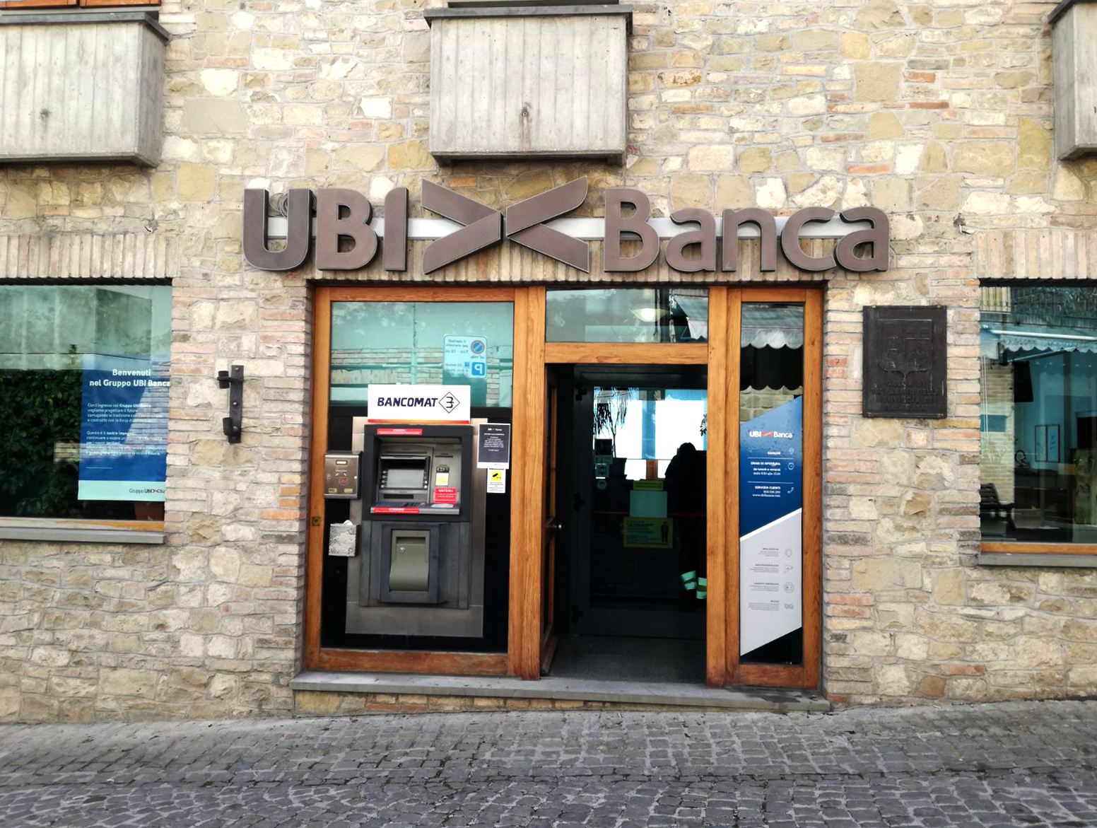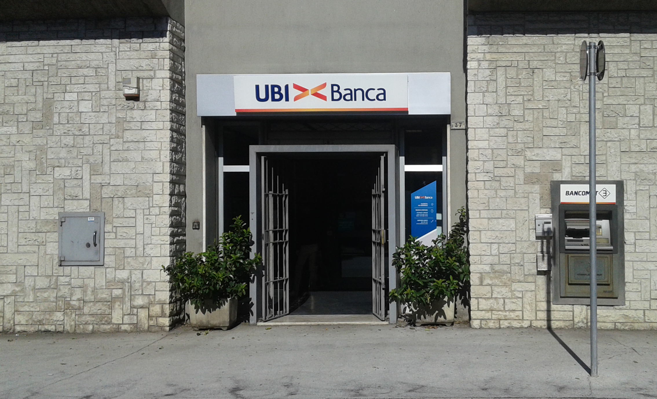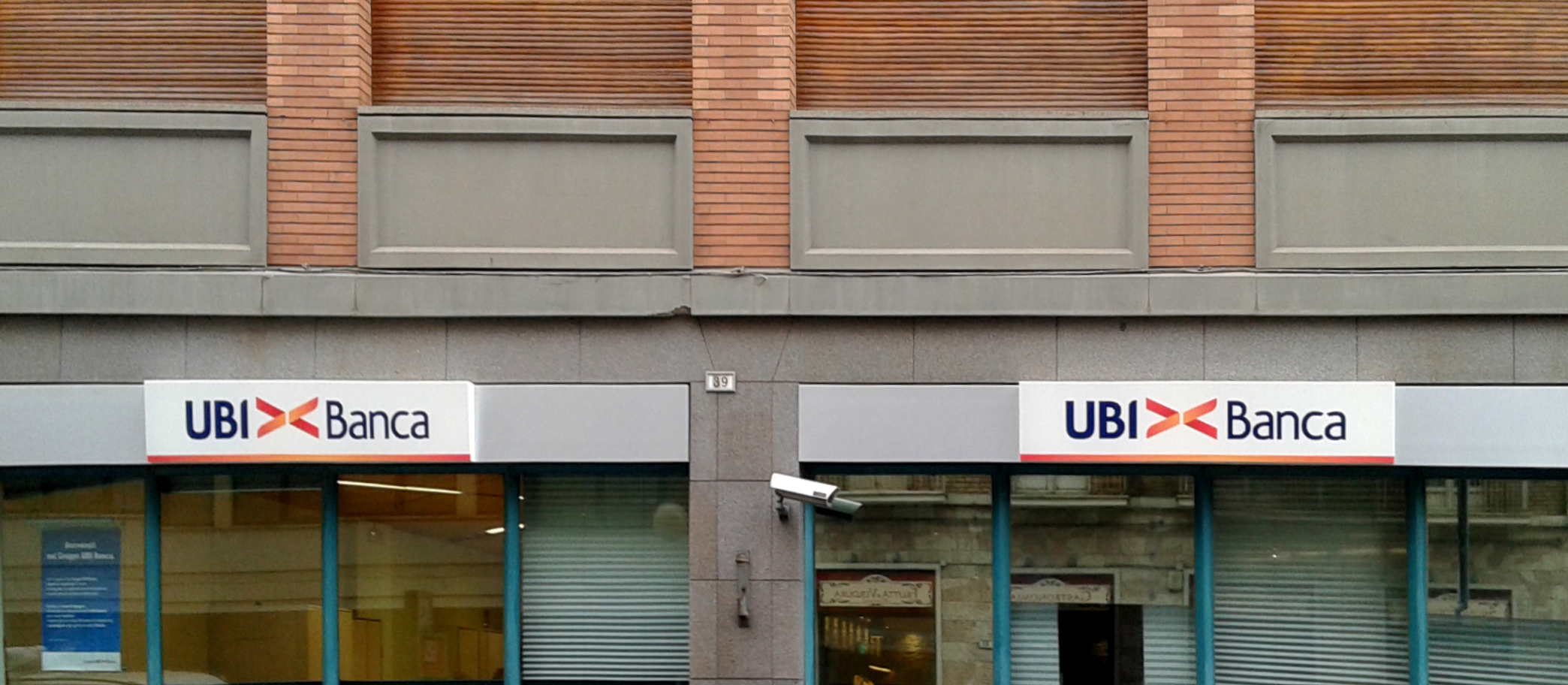 Cambio immagine con nuove insegne a logo UBI><Banca. Gestione progetto con richiesta autorizzazioni pubblicitarie agli enti preposti, progettazione, produzione e installazione degli elementi di immagine esterna.